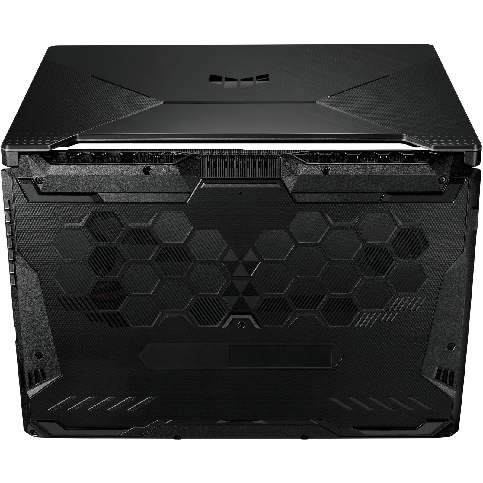 Textured honeycomb grip coats the bottom of the chassis. Strategic cuts double as cooling vents.